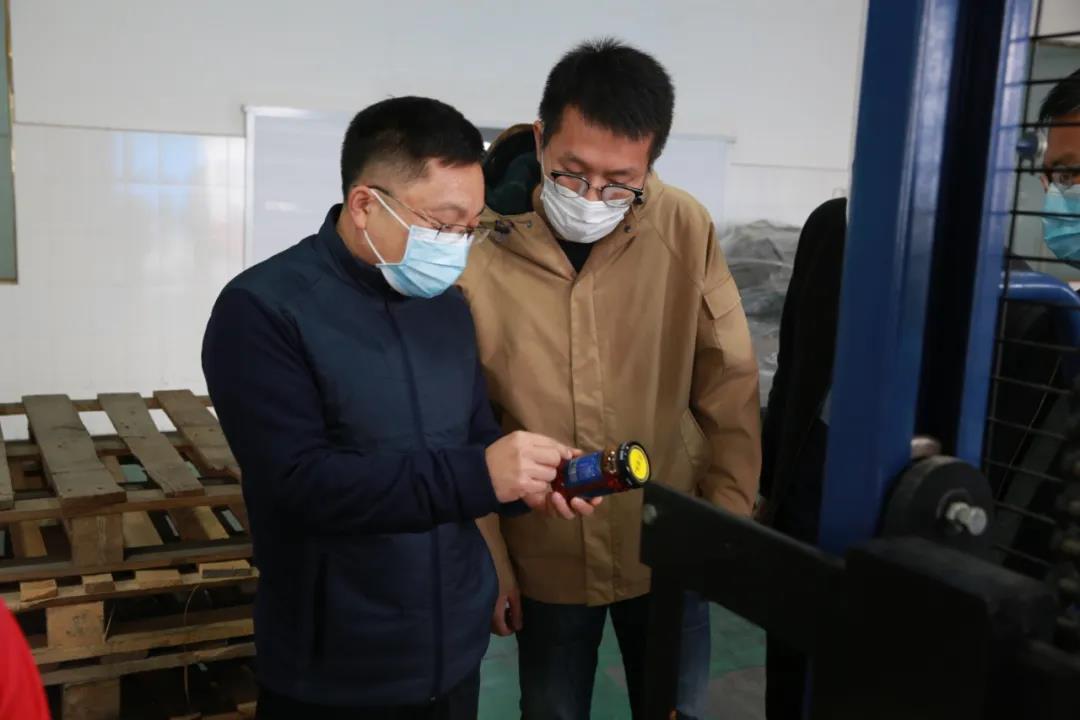 在贴标车间,袁书记了解了公司复工后的牛肉酱系列产品产能、原材料价格波动情况。