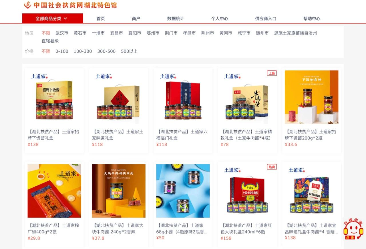 2020 年,在宜昌市、远安县扶贫办的领导与支持下,「土道家」品牌系列产品作为重点扶贫产品进入全国全省消费扶贫目录,产品进入扶贫832平台、中国社会扶贫网湖北特色馆、中国特产·京东宜昌扶贫馆、宜昌市消费扶贫体验馆、宜昌市农副产品扶贫消费专区等平台与渠道进行销售。