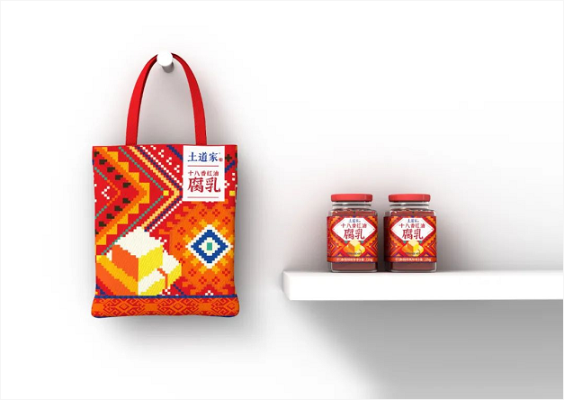 这是自十八香红油腐乳 2015 年产品上市以来,首次进行包装升级。采用了全新的 “土家锦 2.0” 设计语言,将历史悠久的西兰卡普织锦图案融入腐乳的视觉元素中。产品包装处处体现了土家族恪守传统的民族风情,也代表了土道家品牌坚守品质、始终如一的理念。