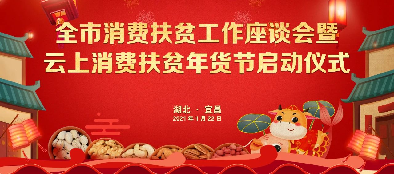 1 月 22 日,宜昌市消费扶贫工作座谈会暨云上消费扶贫年货节启动仪式在桃花岭饭店举行。会议总结了 2020 年度消费扶贫工作,落实“爱心消费助农兴农、促进乡村振兴”,推动形成爱心消费长效机制,启动云上消费扶贫年货节。市政府副市长刘洪福,市政府扶贫办党组书记、主任唐厚胜,市政府副秘书长王磊参加会议。