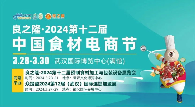 2024 年 3 月 28 日,良之隆•2024第十二届中国食材电商节将在武汉国际博览中心举办。本届展会展览规模达到 26 万平方米,预计有 4000+ 预制食材企业参展,800+ 预制食材生产加工智能化装备企业参展,行业集群效应凸显、业界影响力飙升。